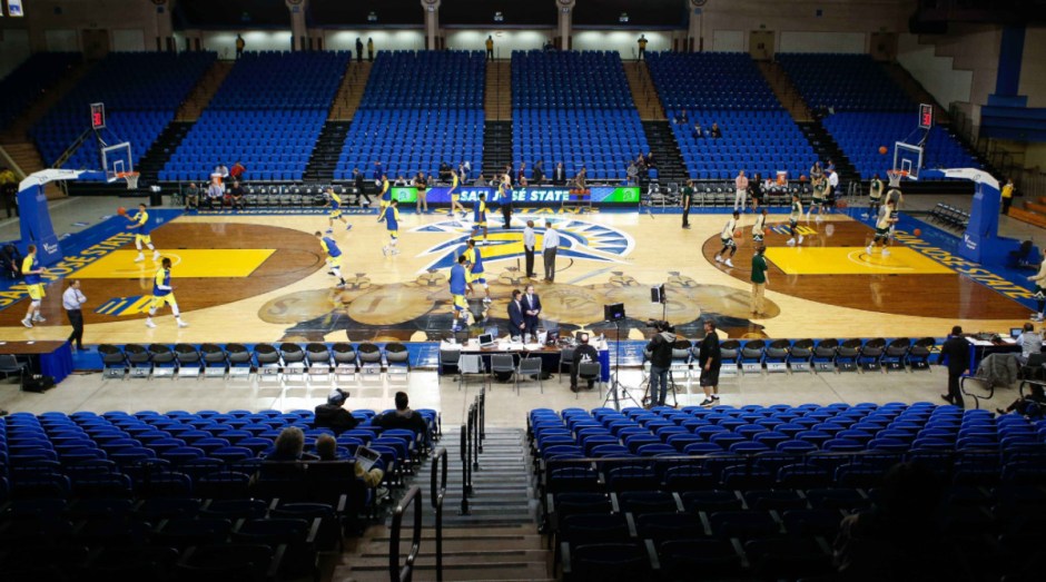 The floor of Provident Credit Union Event Center in San Jose. The San Jose State Spartans hosted Cal State East Bay in an exhibition game on Sat Nov 4, 2023 (file photo from Sports Illustrated)