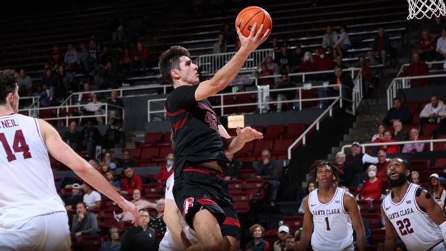 The Broncos took the lead once in the first half by a single point but Stanford hung onto the lead for the rest of the half. Santa Clara refused to go away threatening throughout the final seven minutes of play in the opening half. Stanford led at the half 46-44. Maxime Raynaud had the high for Stanford with 17 points.