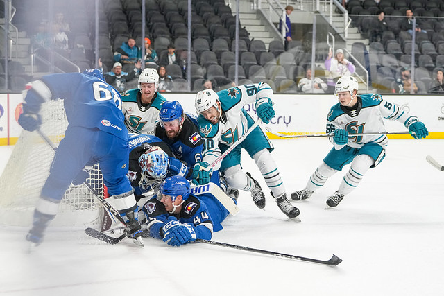 The Barracuda made it a one-goal game near the halfway mark of the third period. Brett Kemp won a battle along the boards before centering a feed to Ozzy Wiesblatt who got Annunen to go down before beating him with a wrist shot to the glove side for his second goal of the season at the 7:31 mark.