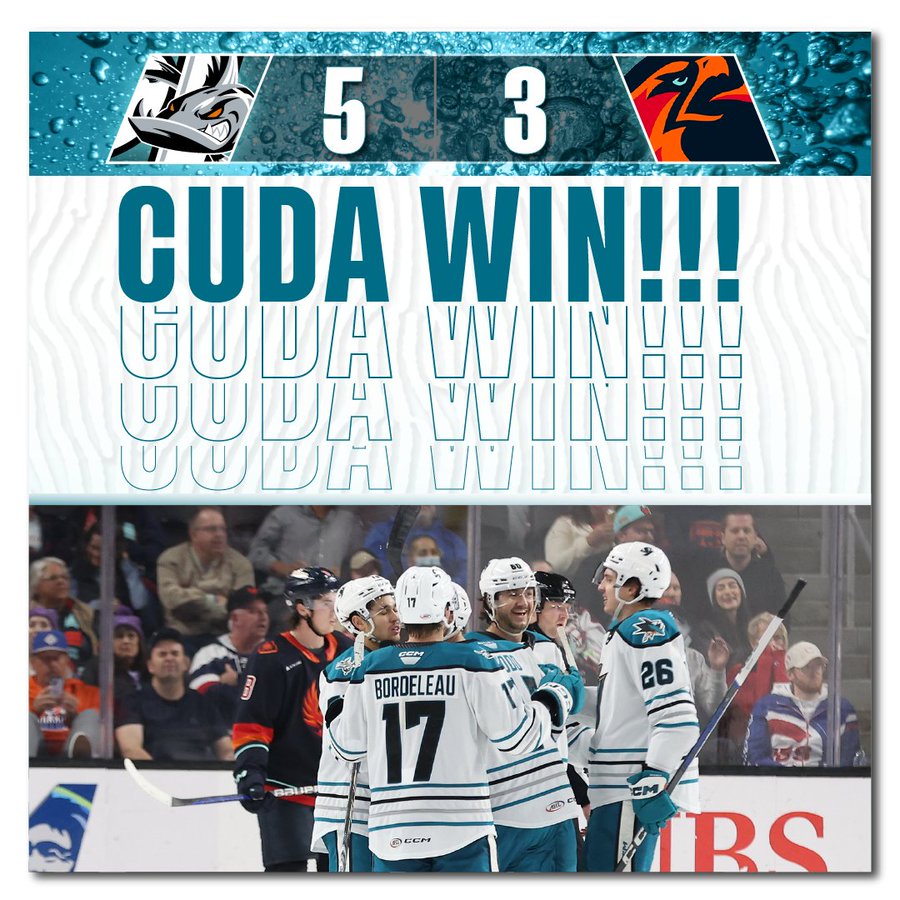 The ‘Cuda scored three power play goals in route to a 5-3 victory over the Coachella Valley Firebirds on Wednesday evening at Acrisure Arena. It was the first win for the ‘Cuda against the Firebirds in their history as Coachella Valley won all 10 games last season against them in its inaugural season.