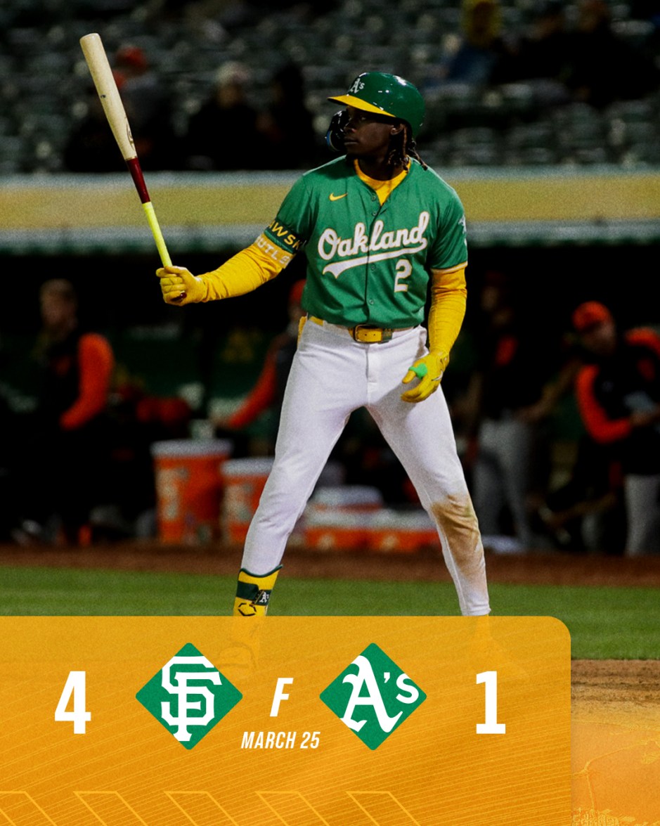 Mason Miller would stop the Giants from any insurance runs by striking out the side, but the A’s would go three up and three down at the plate and lose to the Giants 4-1.