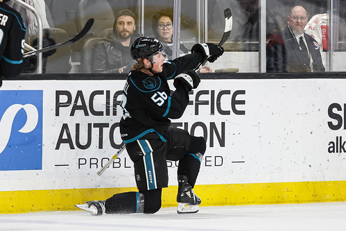 San Jose (22-33-9-4) drew first blood near the halfway mark of the first period with a power play goal. Nathan Todd found Jack Thompson at the point. Thompson blasted a slap shot that was tipped past Vikman by Cole Cassels for his 11th goal of the season at the 8:31 mark.