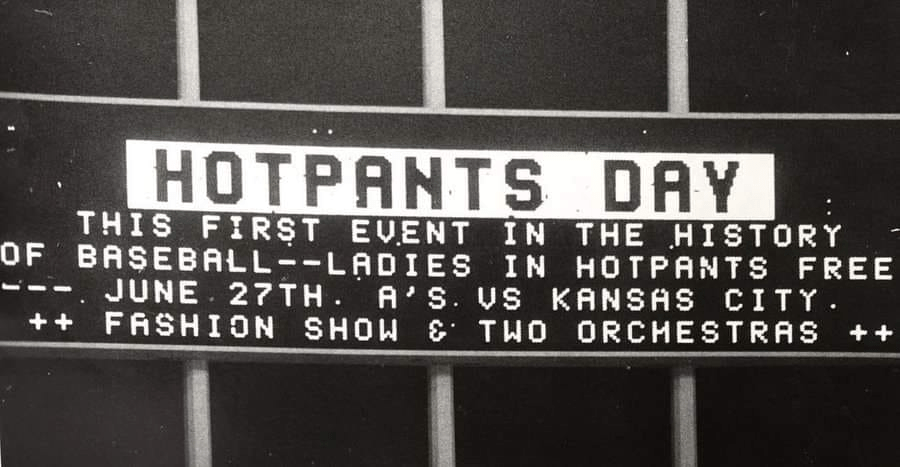 The Oakland A’s hosted a Hot Pants day at the Oakland Coliseum on Jun 27, 1971 when they hosted the Kansas City Royals. Such promotions today would not be approved in baseball. (photo from Amazin A’s Craze on X)