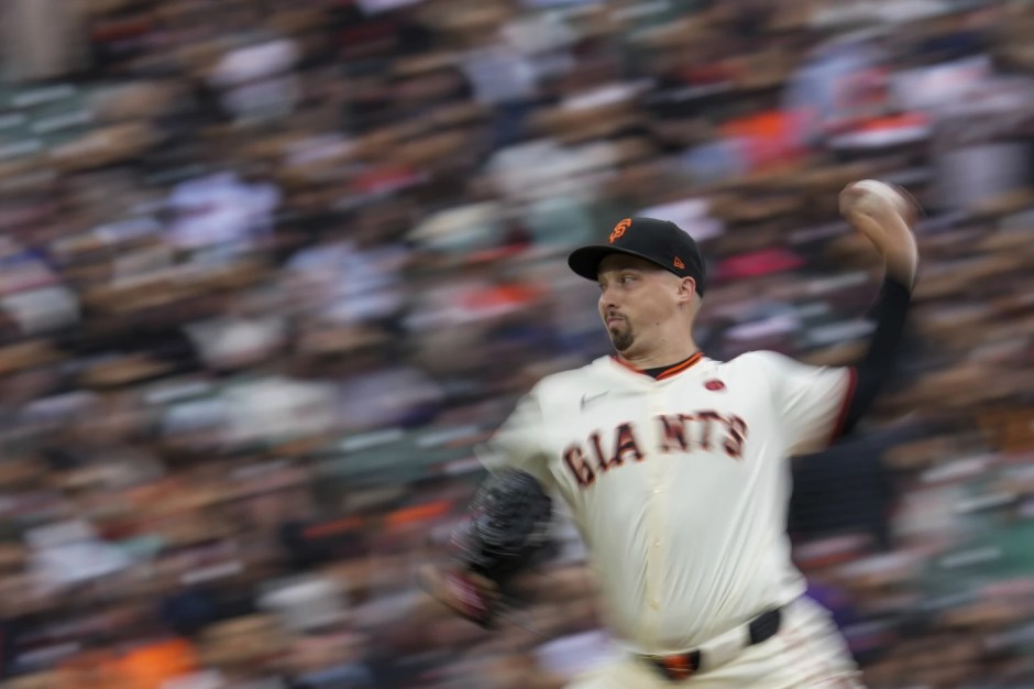 San Francisco Giants starter Blake Snell delivers against the Colorado Rockies in the top if the sixth of the first game of the doubleheader in shutter speed resulting in a 3-D image photo at Oracle Park in San Francisco on Sat Jul 27, 2024 (AP News photo)