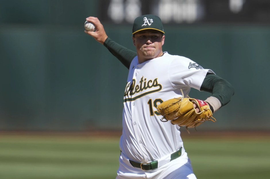 Oakland A’s closer Mason Miller retired the Milwaukee Brewers in the ninth inning to shut the door on the contest at the Oakland Coliseum on Sun Aug 25, 2024 (AP News photo)