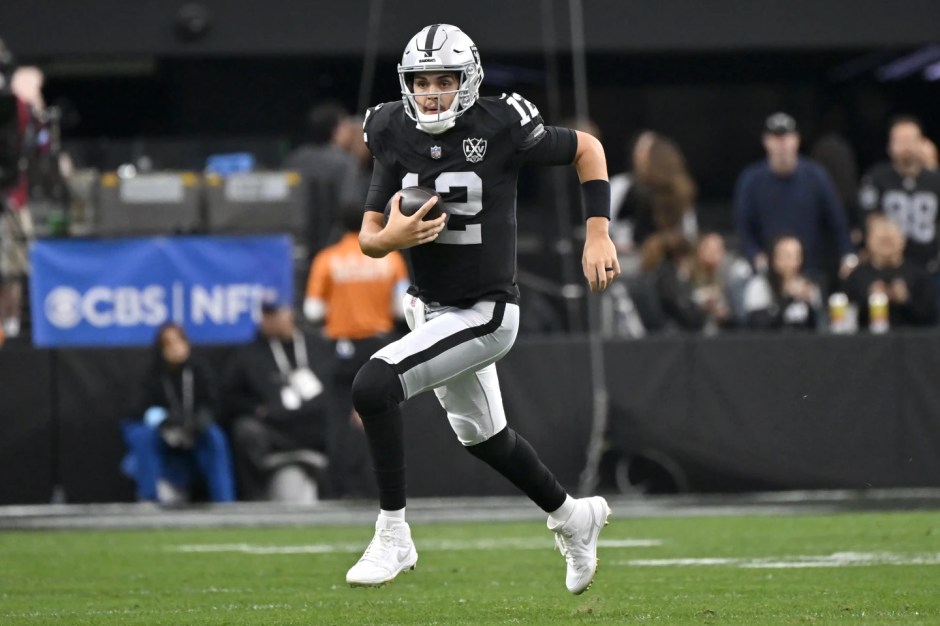 #3 Raiders quarterback Aidan O’Connell threw for 257 yards after coming back from an injury went 24-38 and threw no touchdowns but did enough to squeak by the Jaguars.