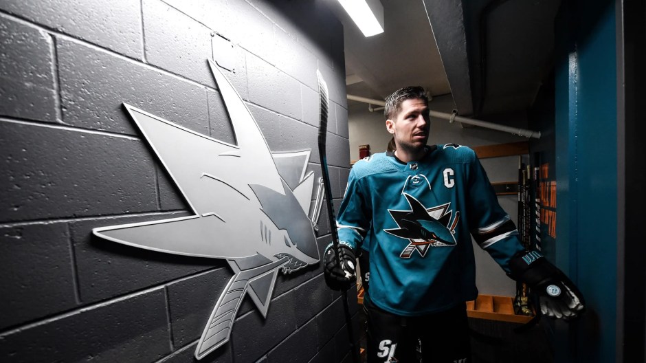 San Jose Sharks captain Logan Couture (39) seen walking down the runway to the ice at SAP Center in San Jose had announced that he was retiring from hockey on Tue Apr 14, 2025 (photo by San Jose Sharks)
