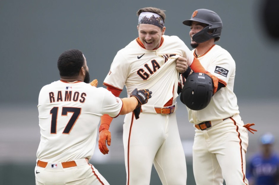 #1 San Francisco Giants Patrick Bailey hit his fourth career walk hit as a pinch hitter that scored Heliot Ramos from as they Giants who were down at one time 2-0 came back and defeated the Texas Rangers 3-2 at Oracle Park on Saturday.