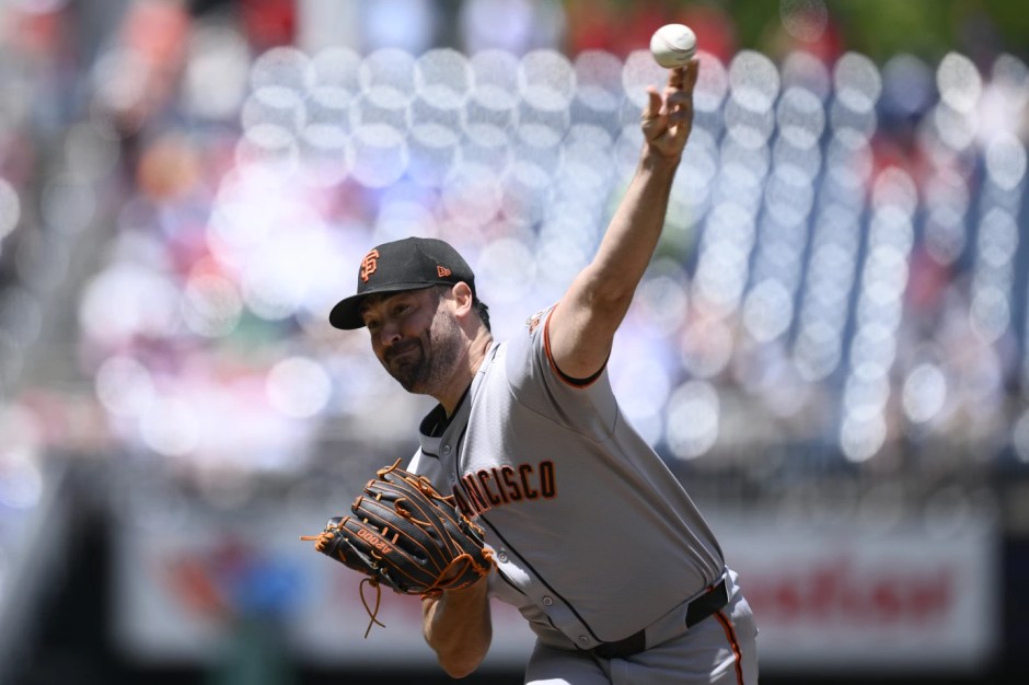San Francisco Giants pitcher Robbie Ray pitches to the Washington Nationals line up in the bottom of the third inning at Nationals Park in Washington DC on Sun May 25, 2025 (AP News photo)