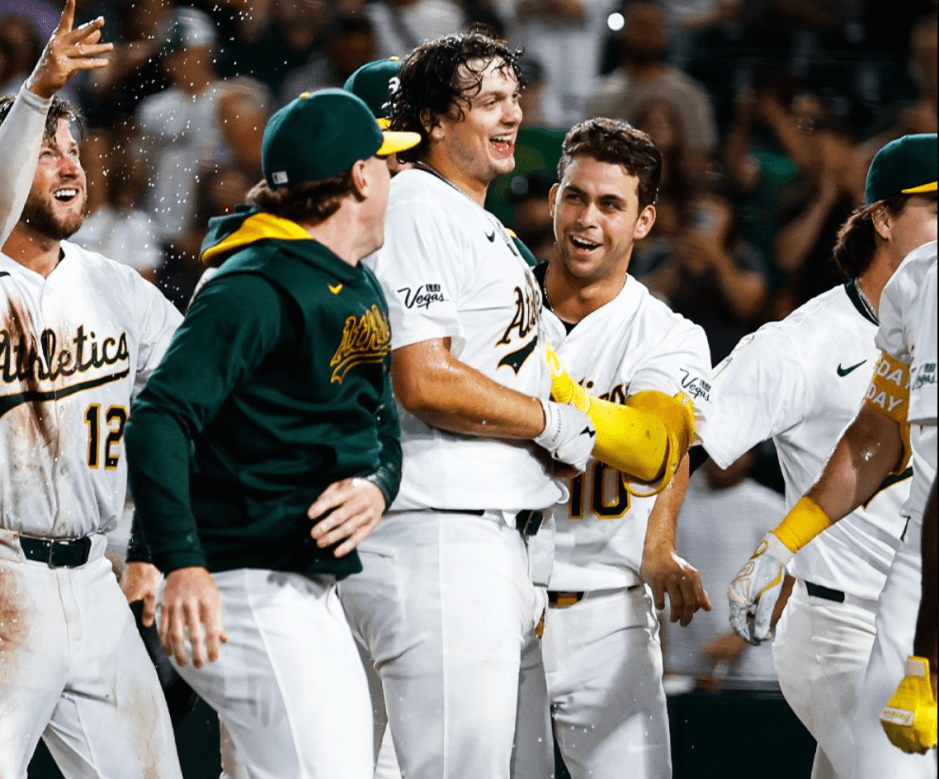 With the game tied in the bottom of the ninth, Brent Rooker worked a walk against Astros reliever Bryan Abreu. Nick Kurtz stepped in and quickly got ahead 2-0 in the count. Looking fastball, Kurtz swung out of his shoes on a breaking ball that fooled him, bringing the count to 2-1. “…When you have a swing like that,” Kurtz said following the game, “there’s a good chance they’re going to throw it again.” Throw it again Abreu did. But this time, he missed his spot with another breaking ball inside, and Kurtz turned on it—launching the game-winning two-run homer 447 feet into the trees beyond the berm in right-center field. “I knew it pretty much right away… that’s the scenario you dream about as a kid, and being able to do it at this level was really cool,” Kurtz said of his walk-off shot.