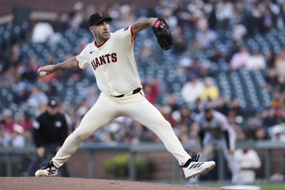 San Francisco Giants starter Justin Verlander was touched up by the Cleveland Guardians on Wed Jun 18, 2025 at Oracle Park in San Francisco (AP News photo)