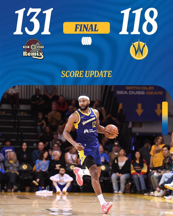 Final. Rip City Remix 131, Santa Cruz Warriors 118. Cryer led the Warriors with 22 points and 5 assists; Galloway added 21; Bolden 18; Ethan Taylor and Jack Clark 13 each. Santa Cruz shot 46 percent overall but couldn’t recover from the 42–23 third-quarter swing.