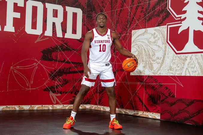 Stanford Cardinal forward Chisom Okpara (10) and the Cardinal prepare to meet the Cal State Northridge Matadors Sat Dec 27, 2025 (photo by Stanford Cardinal)