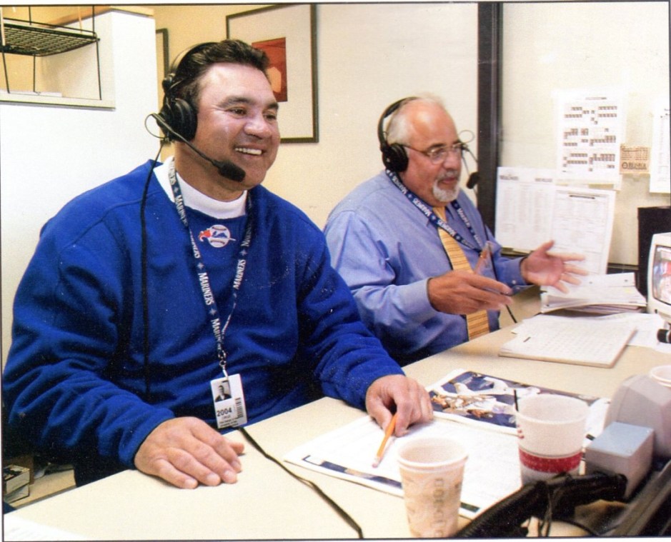 Seattle Mariners Spanish broadcasters Julio The Cruzer Cruz (left) and Amaury Pi Gonzalez (right) as heard on KBRO 1490 in Seattle/Bremerton and KNTB AM 1480 in Tacoma, Cruzer would say “Wow” to that. (photo by the Seattle Mariners magazine)