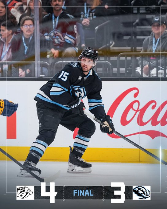 SALT LAKE CITY–Utah began the scoring in each of the three periods, but Nashville drew even each time before taking the only lead they would need with a 4-3 win.