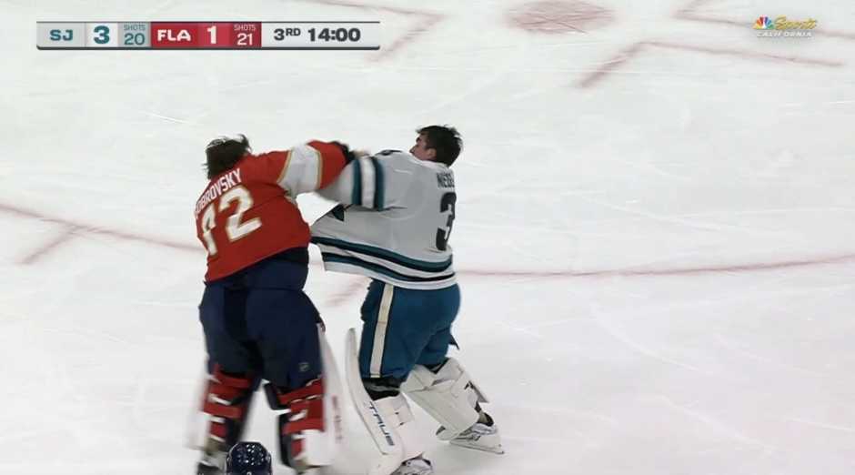 Sharks Defeat Panthers 4-1 With 2 Goals From Defense, Goalie Fight Nedeljovic gets best of brawl