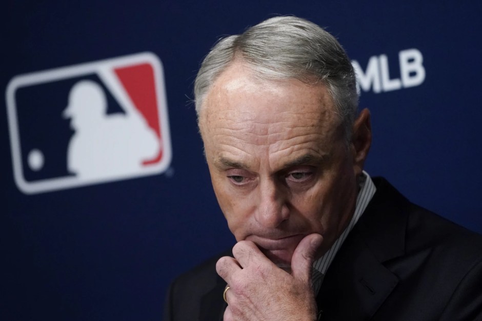 MLB Commissioner Rob Manfred and the owners will be taking on the MLB Players Assciation in bargaing talks over the next Collective Bargaining Agreement contract for the 2027 season. It could be a season that will see a lockout over a salary cap in MLB. (AP News photo)