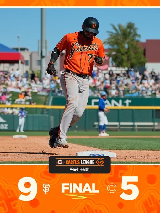 San Francisco Giants center fielder Will Brennan (7) rounds third base against the Chicago Cubs at Sloan Park in Mesa AZ on Sun Mar 8, 2026 (San Francisco Giants X photo)