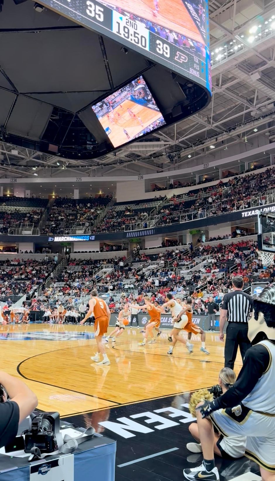 Purdue came out at Texas right at tip-off, feeling the hype from the crowds in San Jose. Purdue guard Fletcher Loyer started the game off with back-to-back three pointers to get the Boilermakers on their feet and an early 6-0 lead. However, there’s a reason this Texas team has made it this far in the tournament. As Texas guard Tramon Mark gets going.