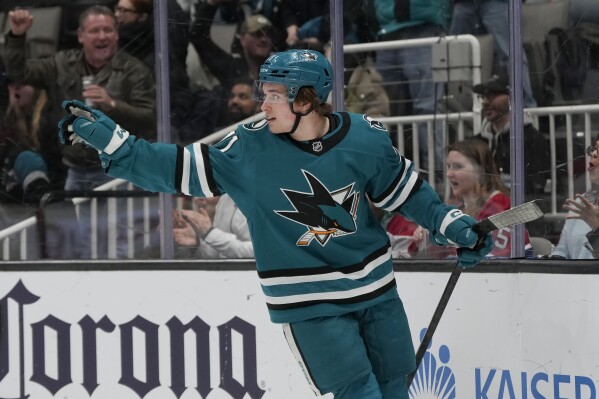 San Jose Sharks Macklin Celebrini (71) will be leaned on to help lead the Sharks out of their current six game losing streak. The Sharks take on the Columbus Blue Jackets Sat Mar 28, 2026 at Nationwide Arena in Columbus. (AP file photo)