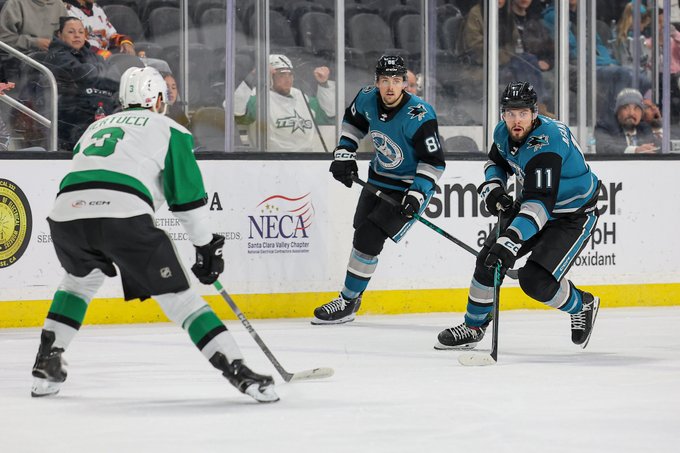 San Jose (38-22-2-2-80 points) dominated play in the first period. Despite recording 12 shots in first 10 minutes of the period, none of them resulted in goals as Stars goalie Remi Poirier was perfect between the pipes to start the game.