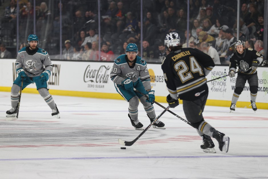 Former Silver Knights goalie Laurent Brossoit got the start for San Jose. Making 16 saves on 22 shots before being pulled from tonight’s game, Brossoit recorded tonight’s, loss. Gabriel Carriere who came into the game in the third period, made 7 saves on 8 shots. For Henderson, Cameron Whitehead got the start. Making 28 saves on 34 shots, Whitehead recorded tonight’s win.