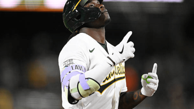 #1 Brent Rooker didn’t get a hit Wednesday in the Athletics game against the Braves but he’s a hitter who can break out at anytime?