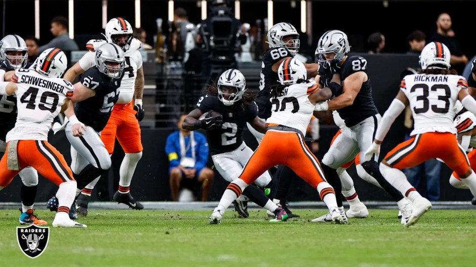 The Raiders eventually end up on the scoreboard. After their first red-zone trip of the night produced a defensive penalty, Las Vegas scored on a 5-yard touchdown throw from Geno Smith to Ashton Jeanty with 5:11 left. The score cuts the gap, but Cleveland maintains a commanding 24-10 edge.
