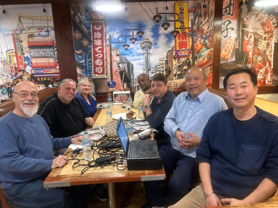 Kippu-Irodori Sushi Restaurant cast (left side left to right) Michael Duca (ESPN/host), Marko Ukalovic (San Jose Barracuda analyst), Kelli Duca (San Francisco Giants customer services), (right side left to right) Michael Roberson (Stanford Cardinal beat reporter), David Zizmor (San Francisco 49ers analyst), Lee Leonard (producer), and Green Chang (owner Kippu-Irodori Sushi Resturants) Photo by Daisy Amaya (advertising)