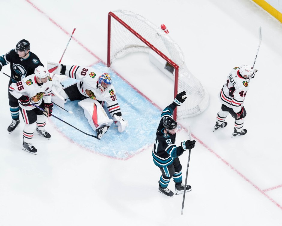 #1 Colin Graf made headlines on Thursday night for the San Jose Sharks. Graf an undrafted rookie showed his handy work scoring twice. Will Smith scored a goal and an assist as the Sharks defeat the Chicago Blackhawks 4-2.