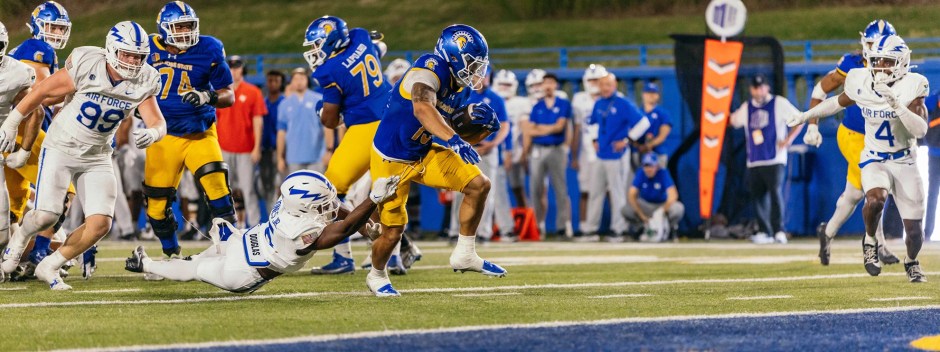Spartans QB Chevan Cordeiro had his hands full against Air Force considering going into this game the Falcons with a conference leading defense. Air Force’s defense ranked first in the conference in seven categories (scoring defense, passing defense, rushing defense, total defense, opposing first downs, third down defense, and sacks for).