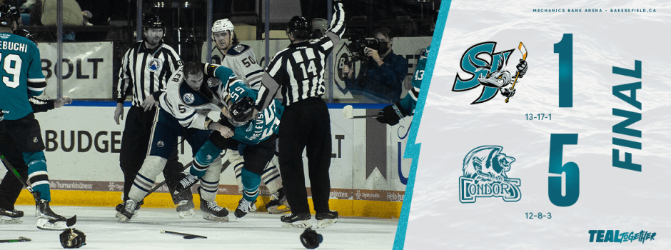 San Jose (14-19-1-0) drew first blood early in the first period. Jake McGrew had a give and go with Zach Gallant inside the Condors zone. Gallant’s shot on net was initially saved by Condor’s goalie, and former San Jose Shark, Alex Stalock. McGrew picked up the rebound and beat Stalock with a wrist shot for his sixth goal of the season at the 5:39 mark.