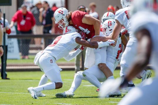 Stanford was short on offensive lineman this spring so Drew Dalman, Henry Hattis, Grant Pease, Dylan Powell and Foster Sarell played every down in the Spring Game. The team needed each of them on every play to make the game possible and they delivered. Tucker Fisk also played a key role for the offensive line as he filled in when needed during spring practices.