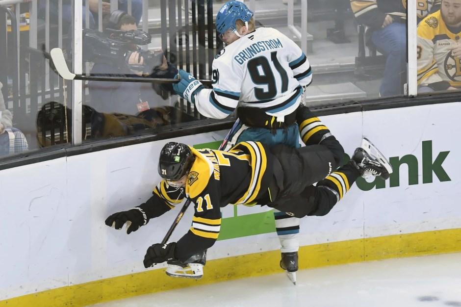 At the end of the first period, Boston was outshooting the Sharks 16-8 and had won 68% of the faceoffs.