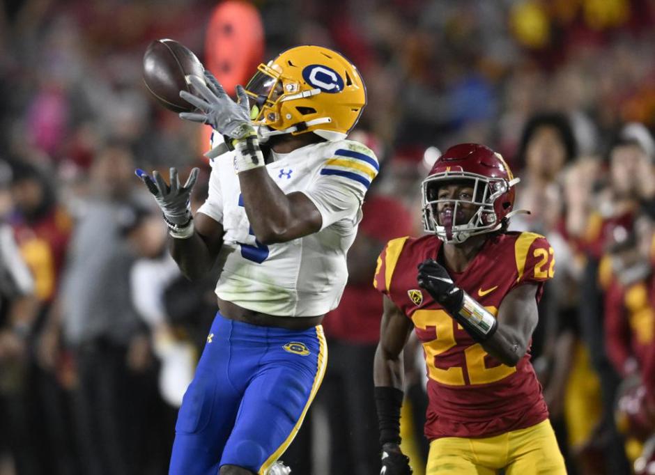 Cal Bears wide receiver Mikey Matthews (8) and wide receiver Nyziah Hunter (13) celebrate at Cal Memorial Stadium in Berkeley against the Oregon State Beavers on Sat Oct 26, 2024 (Cal Bears X photo)