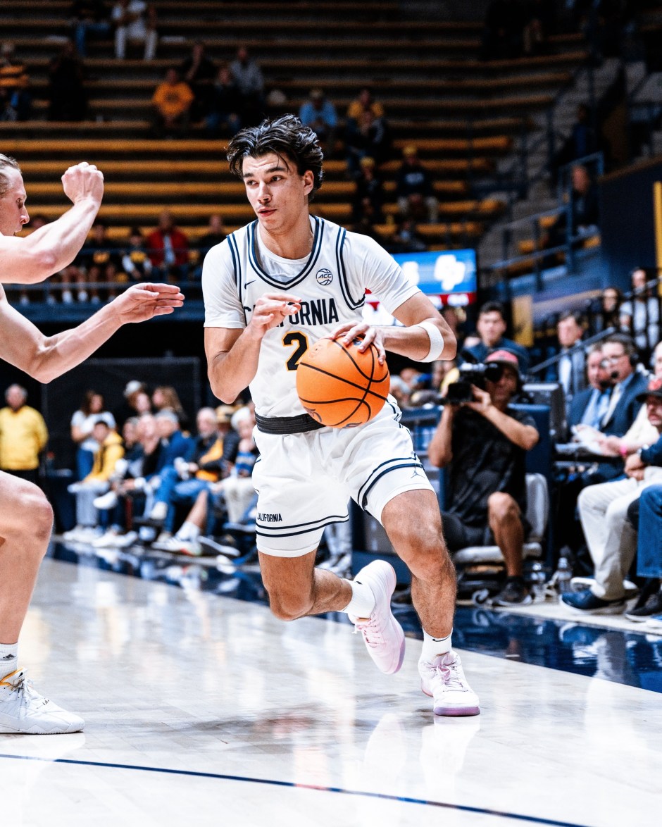 Cal Bears guard Andrej Stojakovic (2) takes the ball down court against the Cal Poly Mustangs on Thu Nov 7, 2024 (Cal Bears X photo)