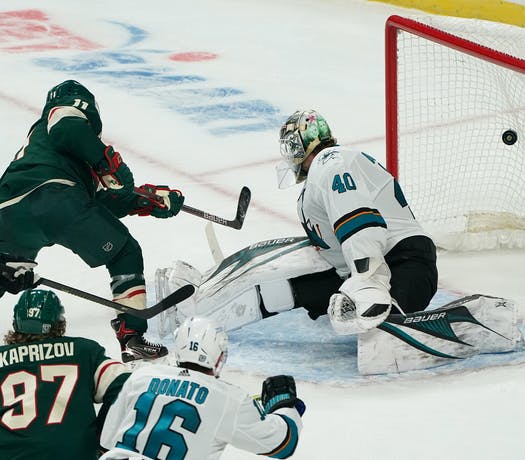 The Sharks pulled Adin Hill for the extra skater with more than to minutes left. The Wild got the puck out and Jordan Greenway raced Brent Burns for the puck. As they reached the net, Greenway was able to nudge the puck in to make it 4-2. Moments later, with the net still empty, Kirill Kaprizov broke away to make it 5-2.