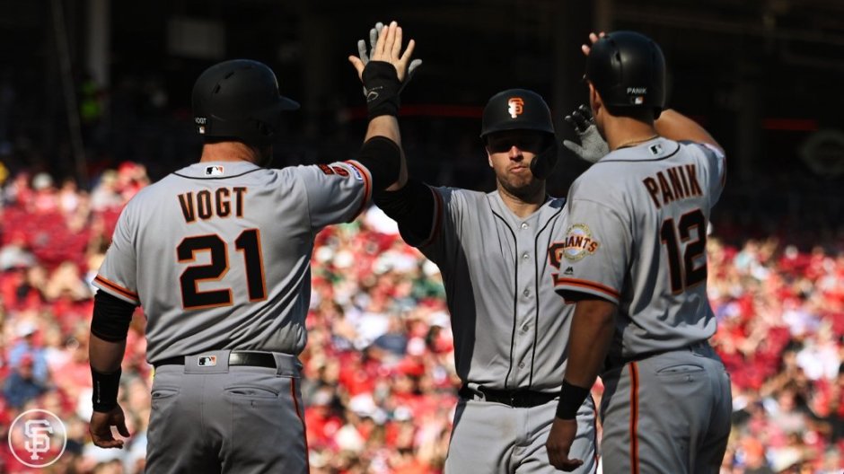 The Giants began to chip away at the Reds big lead in the top of the fourth inning, as they scored three runs off of former Oakland As pitcher Sonny Gray.