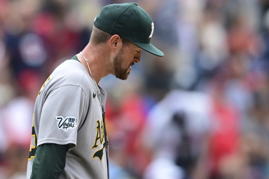 Sacramento A’s outfielder Brent Rooker models the Sacramento uniform the A’s will use when on the road for the 2026 season. (photo by Sacramento A’s X)