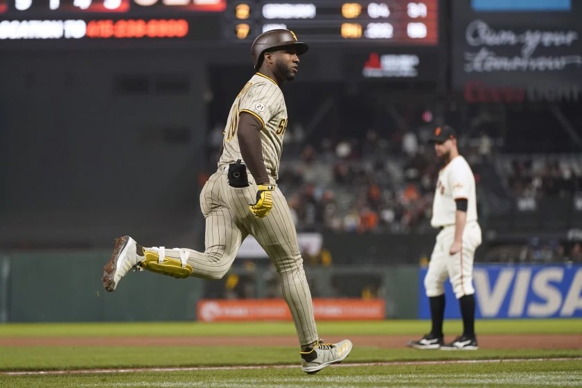 Still the Giants battled, extending their streak of scoring at least six runs in a game to 10, the longest such streak in their San Francisco history. The biggest issues blunting the Giants’ comeback: Brandon Crawford’s second inning error triggered San Diego’s three-run rally, and Jose Quintana–the former Angel picked up off waivers two weeks ago–got taken advantage of. The 51st of his 52 pitches thrown in the fifth and sixth innings was hammered by Jurickson Profar, a home run that increased the Padres’ dwindling lead to 7-3.