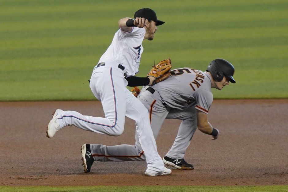 Camilo Doval finished off the Marlins pitching 1 1/3 innings with his mother watching her son for the first time in person. Matt Chapman and Wilmer Flores each had two hits and Tyler Fitzgerald had three hits.