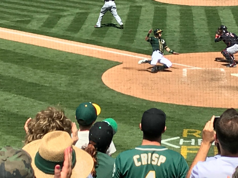 In the ninth inning with Santiago Casilla on the mound, the Braves Danny Santana reached first base on a fielding error charged to Franklin Barreto. Santana then was able to successfully steal second. Dansby Swanson hit a double to left field that drove Santana home with what would prove to be the game winning run. (Braves 4, A’s 3).
