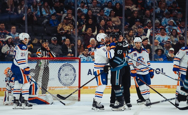 #2 Scoring in the first period the Barracuda scored the first two goals with Lucas Carlsson and Andrew Poturalski the Knights Alexander Holtz scored making it 2-1 Cuda after the first period.