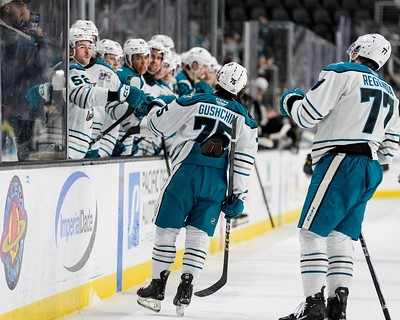 #3 The Barracuda Danil Gushchin scored San Jose’s only goal in the second period. The Knights answered back with two goals from Holtz with his second and third goals of the game for a 3-3 tie after two periods.