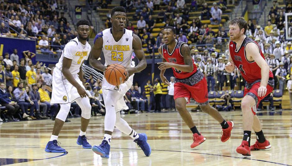 calbears.com photo: Cal Bears Ivan Rabb goes for the high percentage shot against Cal Poly on Saturday night at Haas Pavilion for home consecutive win number 27