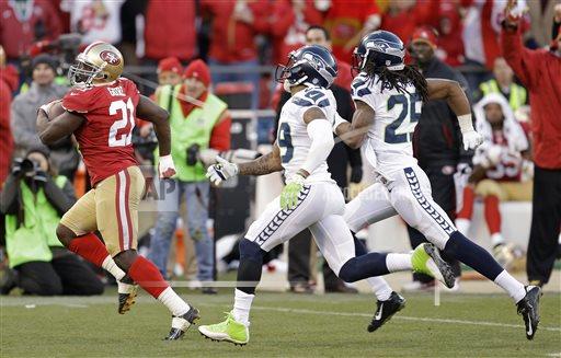 With the 49ers trailing by one, Kaepernick found himself on the spot, having lost to Seattle in his only other appearances and needing to engineer a game-winning drive. But he did, while throwing just one pass in an 11-play drive. The key was a Frank Gore run through an interior gap that the veteran broke for 51 yards and the presence of mind to stay in bounds at its conclusion. The same type of Gore runs had keyed the 49ers’ second half surge in last season’s home win over the Seahawks, 13-6.