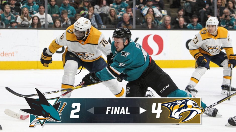 The San Jose Sharks fell 8-2 to the Nashville Predators Tuesday. The Predators have now won 13 of their last 15 games, and earned overtime points in the other two of those 15. Roman Josi, Jason Zucker, Michael McCarron, Luke Evangelista, Mark Jankowski and Tommy Novak scored for Nashville.