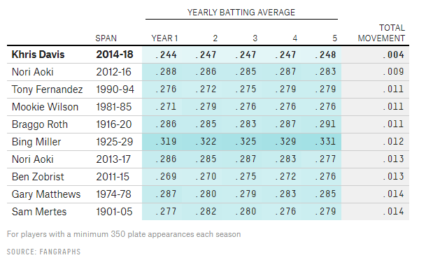 - Khris Davis picked up two RBI and scored a run in his 2-for-4 night for Oakland. Davis played left field in the game because there is no designated hitter because this is a National League ballpark.
