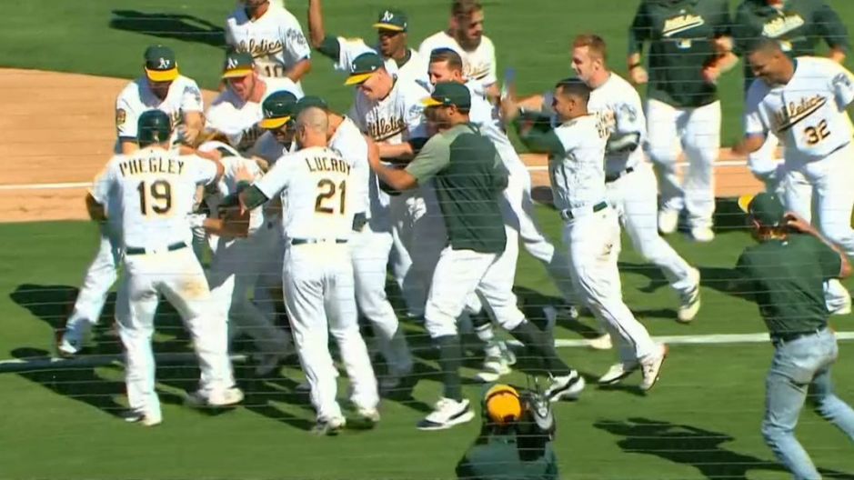 Stephen Piscotty followed up the home run with a single. Matt Olson struck out pinch hitting for Pinder. Ramon Laureano singled up the middle and Piscotty moved up to second base. Mark Canha walked to load the bases with one out. Dustin Fowler entered the game as a pinch hitter and struck out.