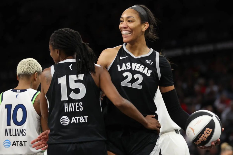 It was all an uphill battle for A’ja Wilson (22) and the Las Vegas Aces against the New York Liberty at Michelob ULTRA Arena in Las Vegas on Sat Jun 15, 2024 (Getty)